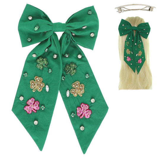 Saint Patrick's Shamrock Bow Barrette Hair Clip in Green